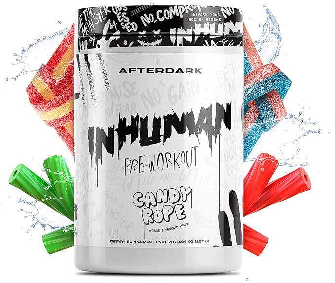 AFTERDARK INHUMAN Pre-Workout Powder, Enhanced Mind-Muscle Connection, Sustained Energy, Potent Nootropic Blend, Vegan, Gluten-Free, Soy-Free, 400mg Caffeine, No Crash, Candy Rope