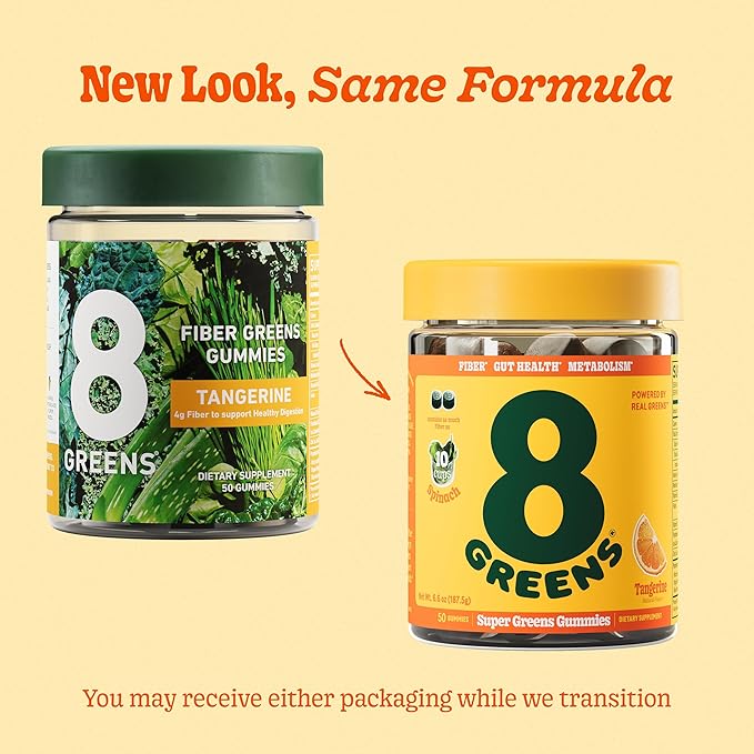 8Greens Fiber Super Greens Gummies | Fiber, Gut Health, Metabolism. Digestive Health, Boost Immune System & Digestive Health with 8 Real Greens - Non-GMO Formula, Gummy, Tangerine Flavor, 50 Count