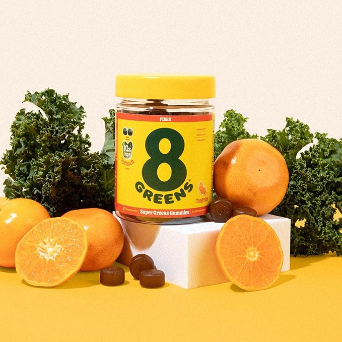 - DELICIOUS TANGERINE FLAVOR: Say goodbye to bland fiber! 8Greens Gummies come in a refreshing and tangy tangerine flavor that makes it easy and enjoyable to get your daily fiber and greens. Convenient and tasty, they’re a treat you’ll look forward to every day.