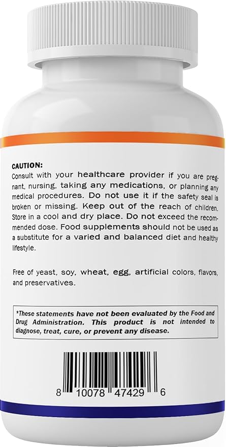 - Free of sugar, starch, soy, yeast, corn, wheat, egg, artificial color, flavor & preservatives.