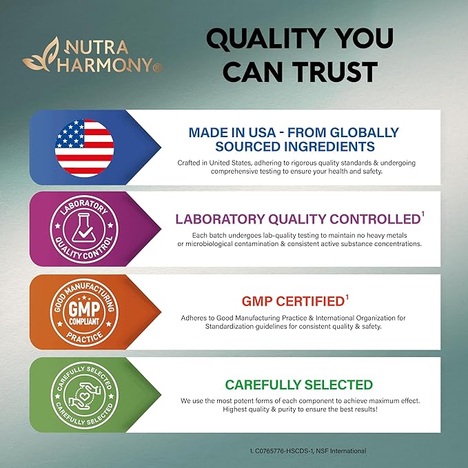 - Made with Care & Love – We take pride in creating a lions main supplement that reflects our commitment to quality and your well-being. NUTRAHARMONY’s lions mane supplement capsules are made with care and love, using premium ingredients to support your cognitive health and overall vitality.