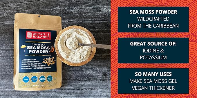 - Instant Health Boost: Need an easy fix for your meal supplement powder? Our Sea Moss powder, equivalent to multiple capsule servings, keeps you replenished with iron, calcium, and potassium. Open the pouch, scoop out the Caribbean Sea Moss powder, and experience the nutrient boost