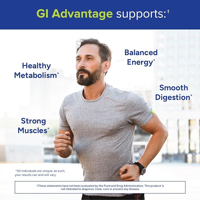 - Lasting Energy: The cutting-edge ingredients in GI Advantage go beyond typical energy supplements. By efficiently converting foods into energy, this formula doesn't just offer a quick energy boost but supports lasting and healthy vitality.*