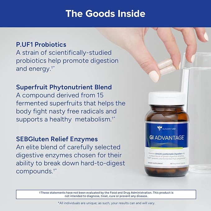 - Quality Ingredients: Gundry MD sources only the highest-quality ingredients, each chosen to give you the best results possible. GI Advantage is free of artificial sweeteners, lectins, soy, sugar, and dairy.
