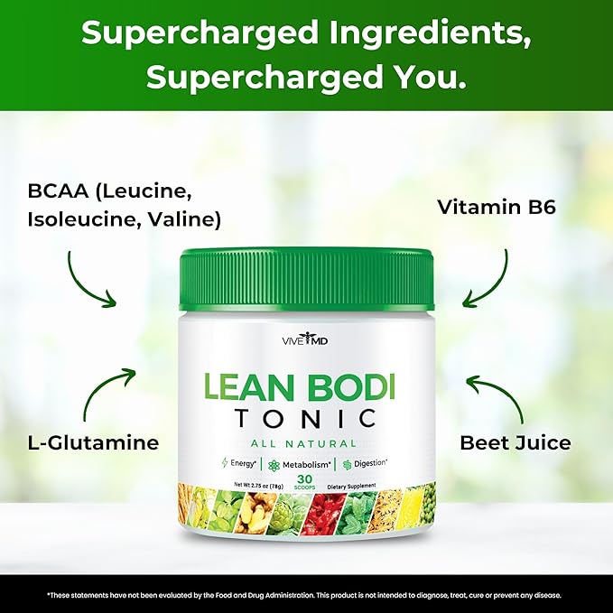 Nagano Lean Bodi Tonic Powder Official FormulaLean Bodi Tonic All Natural with Vitamin B6, and BCAA for Maximum Strength, Cleanse and Lean Metabolic Powder Support Lean Bodi Drink (3 - Pack)