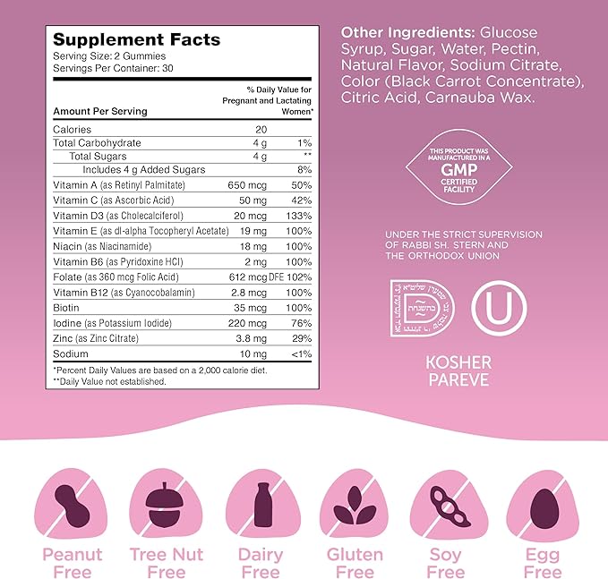 Zahler - Womens Prenatal Gummies - Grape Flavor - Prenatal Vitamins for Women with Folic Acid - Vegetarian & Kosher Pregnancy Vitamins - Womens Prenatal Multivitamin with A C D3 E B6 B12-60 Count