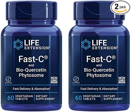 Life Extension Fast-C & Bio-Quercetin Phytosome – Fast Delivery & Absorption Vitamin C Supplement for Optimum Immune Support – Gluten-Free, Non-GMO, Vegetarian – 60 Tablets (Pack of 2)