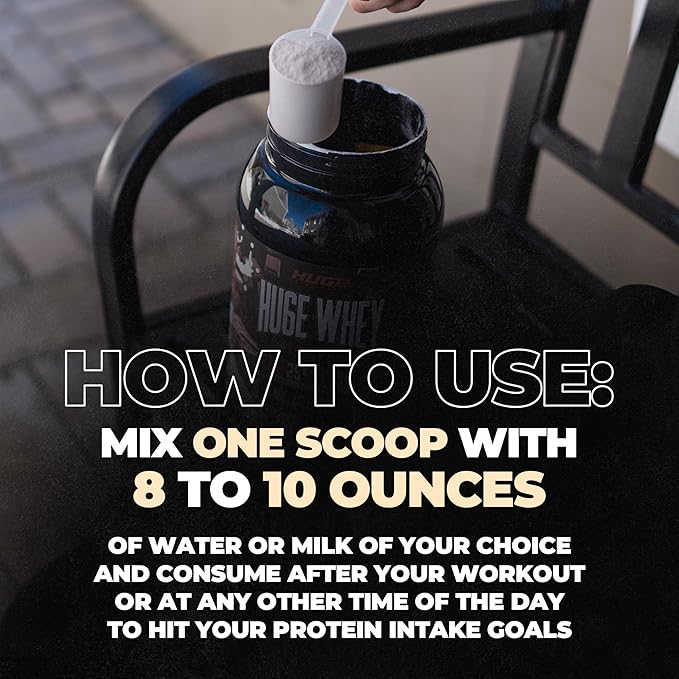 - Protein Powder For Muscle Gain: Huge Whey Protein is meticulously formulated as a protein powder for muscle gain. Packed with high-quality whey protein, it provides a massive 25 grams of protein that your muscles need to grow stronger and faster. Whether you're a seasoned athlete or just starting your fitness journey, Huge Whey Protein supports your muscle-building goals with every scoop.