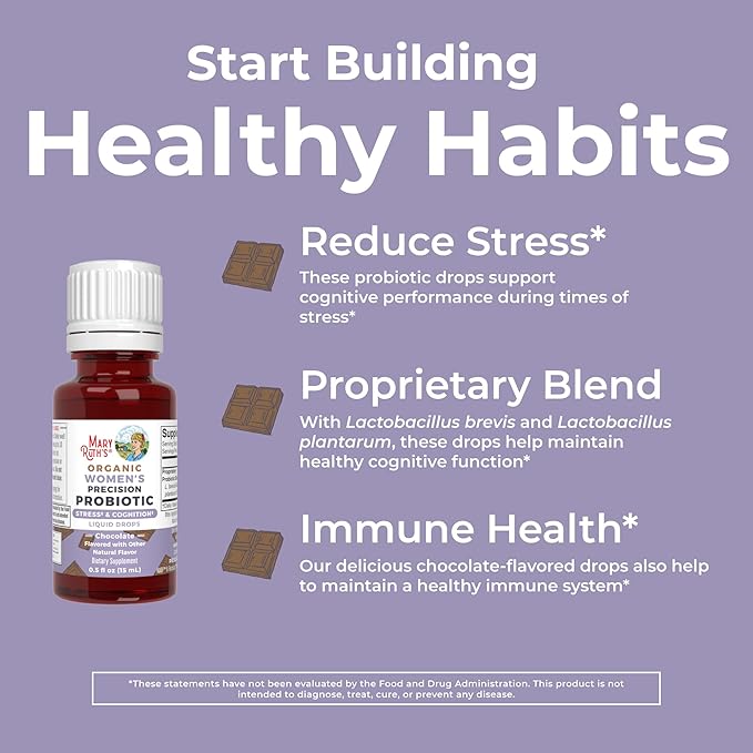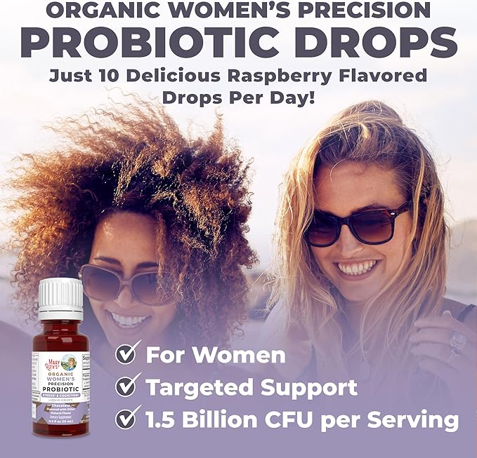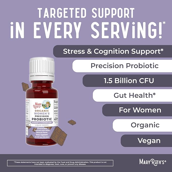 - For Most Lifestyles: MaryRuth's Organic Women's Precision Probiotic Stress & Cognition Liquid Drops are Certified USDA Organic, Vegan, Non-GMO. Dairy Free, Nut Free, Gluten Free, Soy Free, Sugar Free. Made in a GMP Facility. Clean Label Project Verified. B Corp Certified.