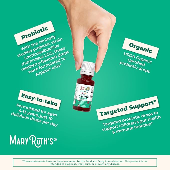 - For Most Lifestyles: MaryRuth's Organic Kids Precision Probiotic Digestive Liquid Drops are Certified USDA Organic, Vegan, Non-GMO. Dairy Free, Nut Free, Gluten Free, Soy Free, Sugar Free. Made in a GMP Facility. Clean Label Project Verified. B Corp Certified.