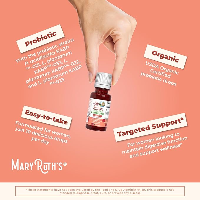 - For Most Lifestyles: MaryRuth's Organic Women's Precision Probiotic Digestive Liquid Drops are Certified USDA Organic, Vegan, Non-GMO. Dairy Free, Nut Free, Gluten Free, Soy Free, Sugar Free. Made in a GMP Facility. Clean Label Project Verified. B Corp Certified.