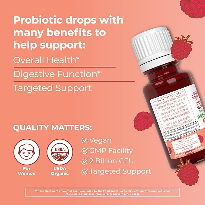 - Womens Probiotics for Digestive Health: Formulated to help women maintain digestive health & wellness! These targeted drops come in a tasty raspberry-flavored liquid to provide digestive support.
