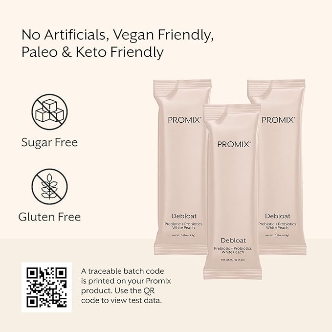 Promix Debloat Prebiotics and Probiotics for Digestive Health, Bloating Relief, Gut Health, Candida Cleanse - White Peach - 30 Count