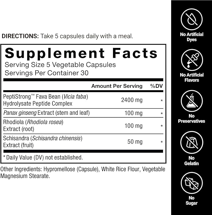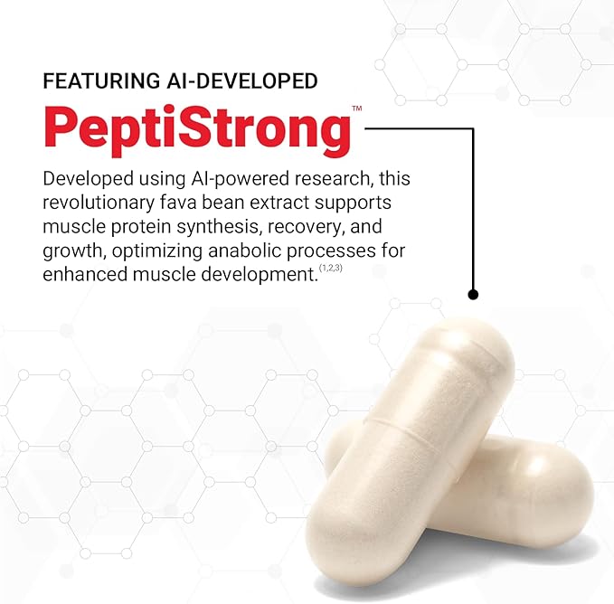 - DEVELOPED WITH AI TECHNOLOGY: Powered by AI-developed PeptiStrong*, a revolutionary fava bean extract that supports muscle protein synthesis, recovery, and growth, optimizing muscle processes for enhanced results.