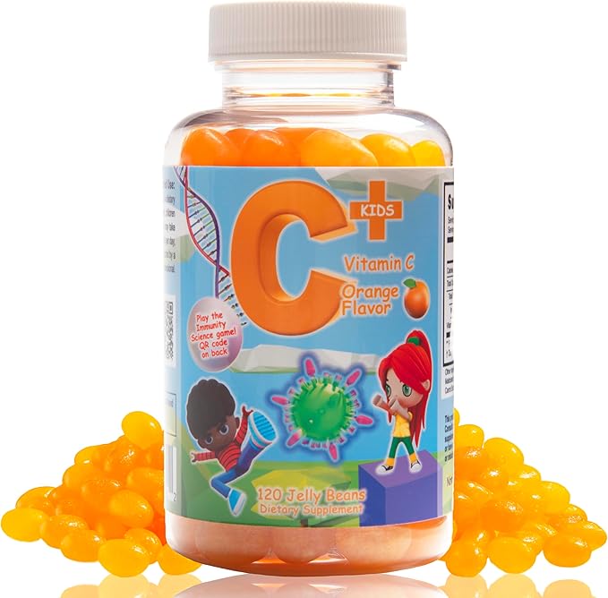 Kids Vitamin C+ Jellybeans 80mg - Natural Orange Flavor- Gluten Free -Vegan Friendly - Non GMO