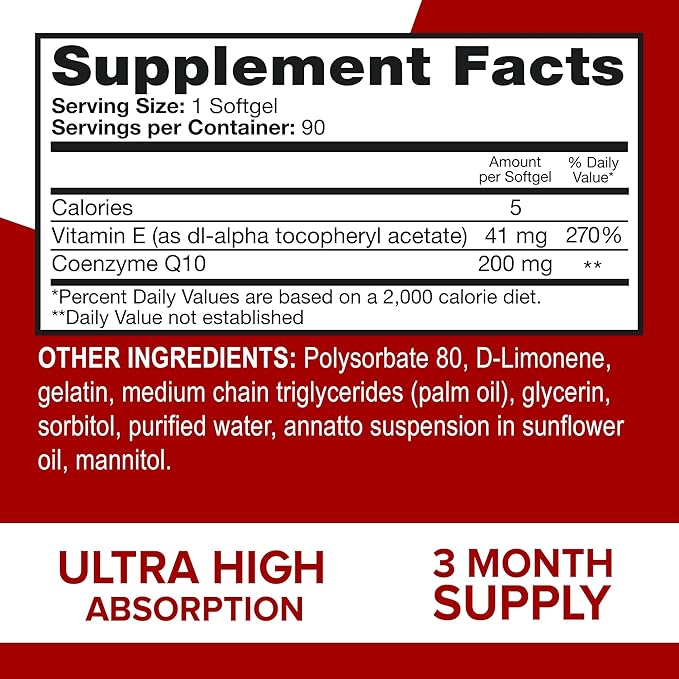 Qunol CoQ10 200mg Softgels, Ultra CoQ10 - Ultra High Absorption Coenzyme Q10 Supplements - Antioxidant Supplement for Vascular and Heart Health & Energy Production, 90 Count