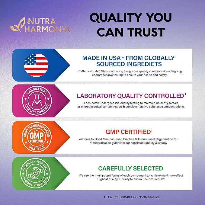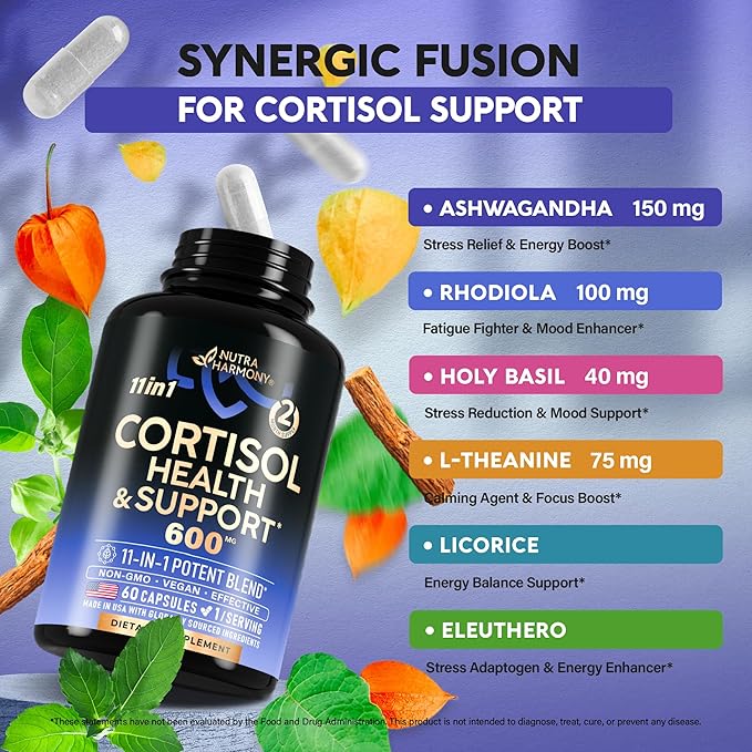 - Prioritizing You – Cortisol suppoort complex just for you! Make your health a priority – you deserve nothing less than the finest. Begin your journey towards well-being today, and join the NUTRAHARMONY community in sharing your transformative experience.