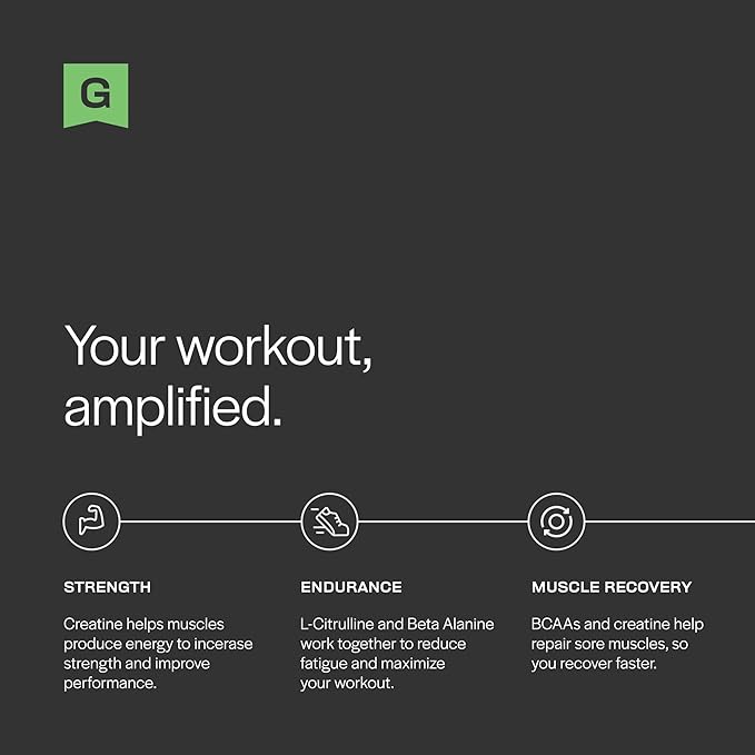 - STRENGTH SUPPORT: Fuel your workouts with Gainful's pre workout with creatine. Packed with 3000 mg of Creatine, our natural pre workout can help muscles produce energy to increase strength and improve performance.