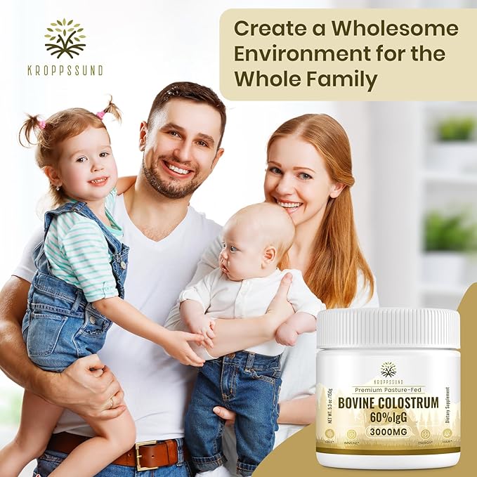 - Developmental Growth: With essential growth factors, our bovine colostrum promotes cell growth, tissue repair, and bone development, particularly advantageous for fostering developmental growth across all ages within the family unit.