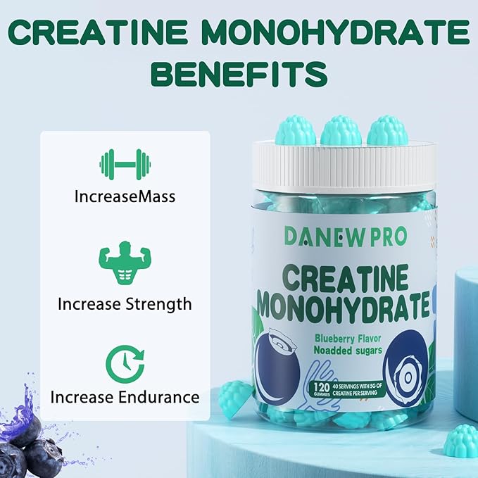 Creatine Monohydrate Gummies 5000mg for Men & Women, Creatine Monohydrate for Muscle Strength, Muscle Builder, Energy Boost, Pre-Workout Supplement(120 Count)-Blueberry Flavor