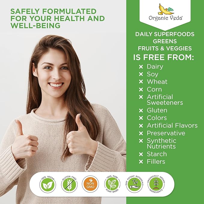 - Nutrient-Rich Greens Blend: Our Daily Superfoods Greens supplement, a perfect blend of superfood greens, includes organic greens like Moringa Leaf, Wheatgrass, Barley Grass, Alfalfa, Celery, Broccoli, Spinach Leaf, Asparagus, Matcha Green Tea Leaf, Spirulina, Chlorella, offering a rich source of vitamins and minerals