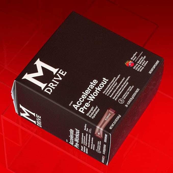 - Pair your Accelerate pre-workout with our M Drive Elite for improved endurance, recovery, and higher energy levels; a healthier, smarter combination of clinically-tested, plant-based ingredients, and only a reasonable amount of stimulant