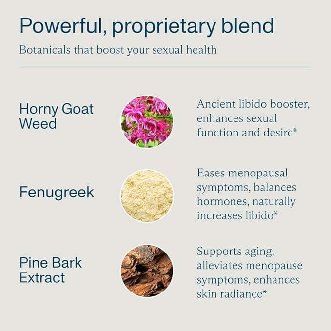 - Powerful Natural Ingredients - Our unique formula combines Horny Goat Weed, Fenugreek, and Pine Bark Extract for enhanced sexual desire, arousal, and hormone balance. We also include Guarana, Burdock Root, Bladderwrack, and Green Tea for vitality and well-being.