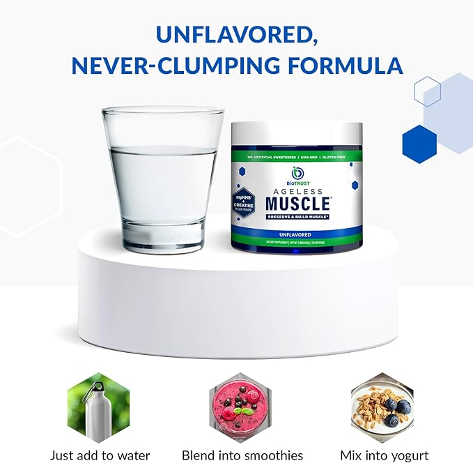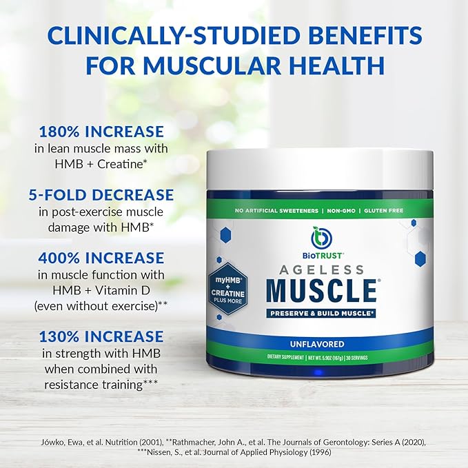 - MUSCLE BUILDER FOR MEN & WOMEN. Advanced benefits in 1 premium powder: Act against age-related muscle mass decline with Ageless Muscle; our creatine monohydrate and HMB supplements help prevent natural muscle loss that comes with aging.