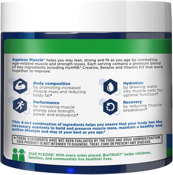 - MUSCLE BUILDER FOR MEN & WOMEN. Advanced benefits in 1 premium powder: Act against age-related muscle mass decline with Ageless Muscle; our creatine monohydrate and HMB supplements help prevent natural muscle loss that comes with aging.