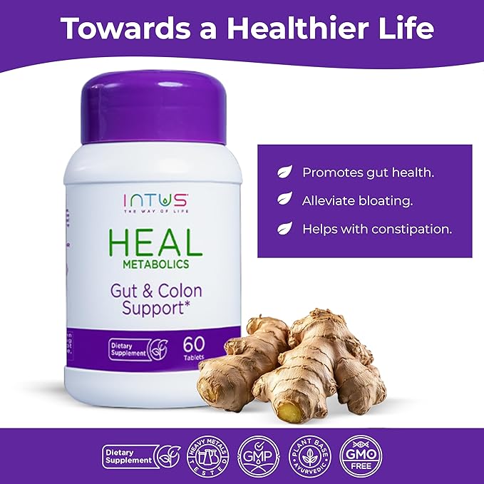 - Intus Heal supports gut health with a blend of 17 Ayurvedic herbs. This supplement promotes digestive balance, offering comprehensive support for men and women seeking natural wellness.