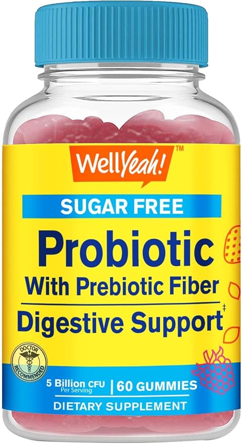 Sugar Free Probiotic with Prebiotic Gummies (5 Billion CFU) - Digestive Support, Gut Health, and Vaginal Support - Shelf Stable Probiotic Gummy, Prebiotics and Probiotics for Women and Men - 60 Count
