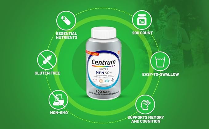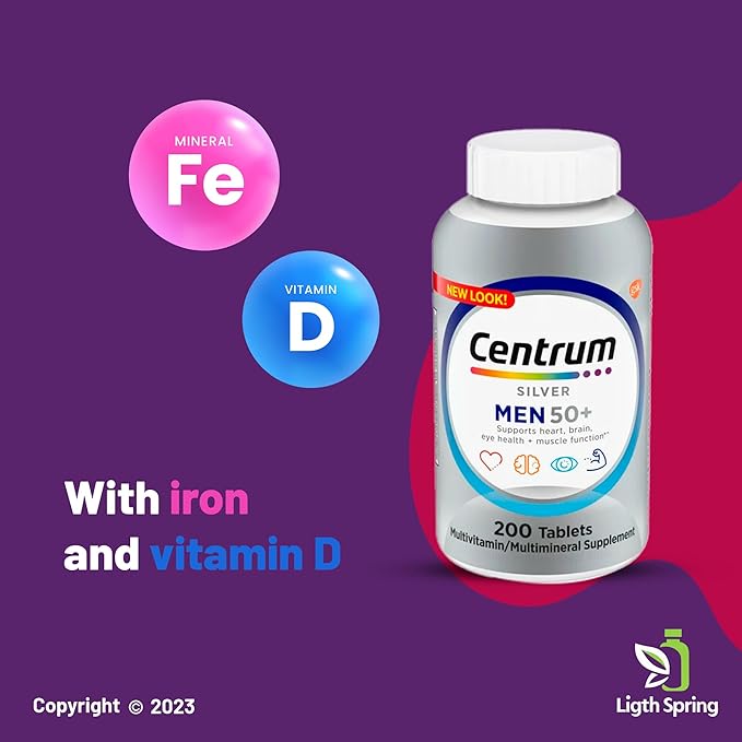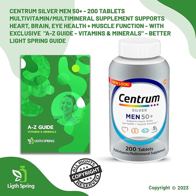 Multivitamin for Men 50+, Centrum Silver with Vitamin D3, B-Vitamins & Zinc, 200 Tablets for Memory Support, with Exclusive A to Z - Better Ligth&Spring Guide