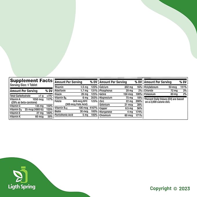 - Special Ingredients : Calcium Carbonate, Potassium Chloride, Magnesium Oxide, Ascorbic Acid (Vit. C), Microcrystalline Cellulose, Dibasic Calcium Phosphate, DL-alpha Tocopheryl Acetate (Vit. E), Modified Corn Starch, Maltodextrin, Corn Starch, Crospovidone. Contains <2% of: Beta-Carotene, BHT (to preserve freshness), Biotin, Blue 2 Lake, Calcium Pantothenate, Cholecalciferol (Vit. D3), Chromium Picolinate, Copper Sulfate, Cyanocobalamin (Vit. B12), Folic Acid, Gelatin, Hypromellose, Lutein, Lycopene, Magnesium Stearate, Manganese Sulfate, Medium-Chain Triglycerides, Niacinamide, Phytonadione (Vit. K), Polydextrose, Potassium lodide, Pyridoxine Hydrochloride (Vit. B6), Red 40 Lake, Riboflavin (Vit. B2), Silicon Dioxide, Sodium Ascorbate (to preserve freshness), Sodium Molybdate, Sodium Selenate, Talc, Thiamine Mononitrate (Vit. B1), Titanium Dioxide, Tocopherols (to preserve freshness), Vitamin A Acetate, Yellow 6 Lake, Zinc Oxide. Calcium Carbonate, Potassium Chloride, Magnesium Oxide, Ascorbic Acid (Vit. C), Microcrystalline Cellulose, Dibasic Calcium Phosphate, DL-alpha Tocopheryl Acetate (Vit. E),… See more