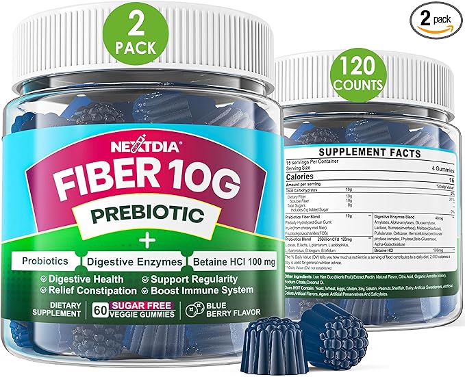 - 【Chewy & Convenient Fiber Intake】Make taking your daily fiber feel like a snacks! Daily fiber gummies deliver natural blueberry taste with no aftertaste, sugar free, delicious, easy to chew and a perfect alternative to hard-to-swallow fiber pills and capsules. Plus, they are Non-GMO, natural, gelatin-free, gluten-free, and vegan. Only 5% of Americans get enough fiber, Nextdia organic fiber supplement is the easy gentle solution for ever yday. Easy to carry with you wherever you go.