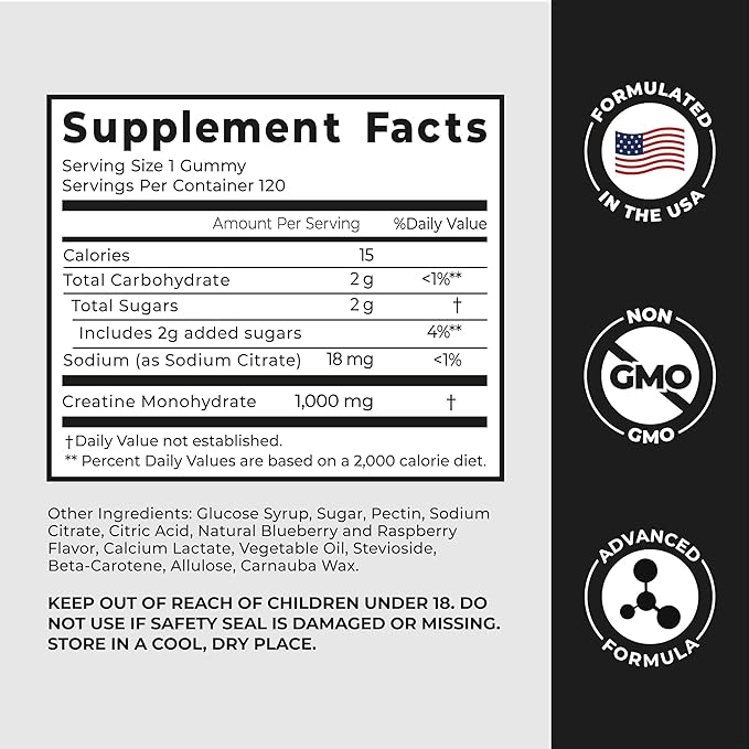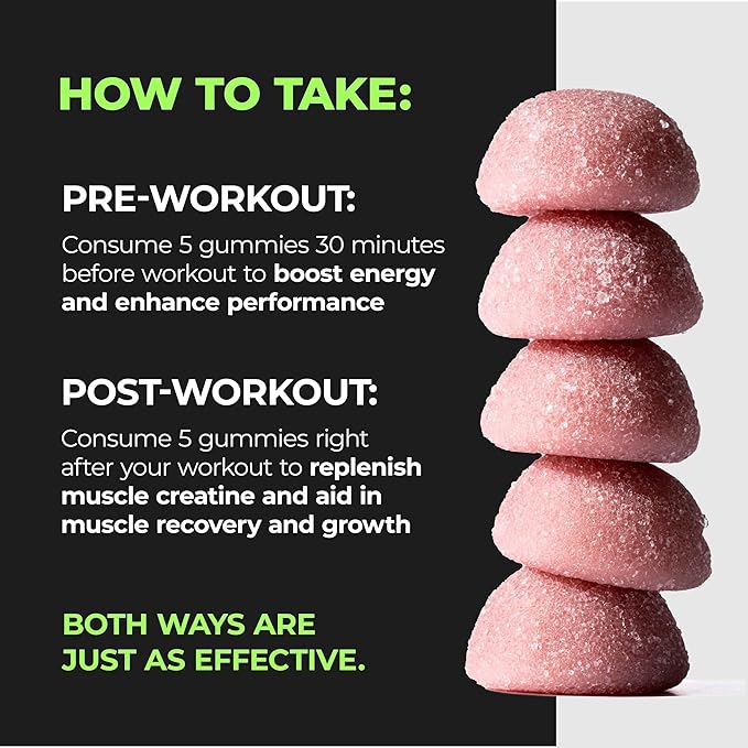 - DELICIOUS CONVENIENCE: Enjoy all the benefits of creatine powder in a tasty, easy-to-use form. No more mixing, shaking, and chalky aftertaste. Reach your fitness goals with raspberry-flavored creatine gummies, made without artificial colors or sweeteners.*