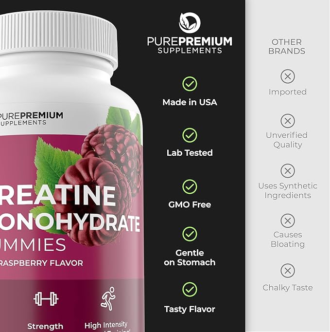 - NATURAL INGREDIENTS: At PurePremium, we are committed to the highest standards. Our pectin-based creatine gummies for women and men are made with natural ingredients. They are GMO-free, gluten-free, and vegan-friendly, making them suitable for everyone.*