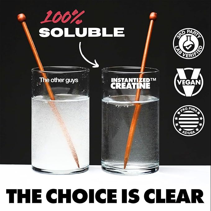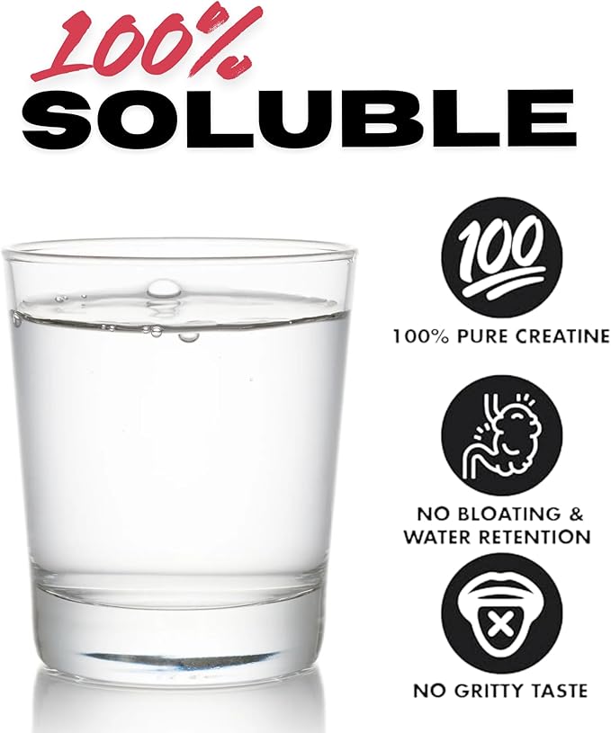 - ULTIMATE SOLUBILITY & ABSORPTION: The world's first 100% soluble creatine monohydrate. All in benefits of creatine without the bloating, water retention, or gritty taste. Perfect for pre-workout and part of your daily nutrition routine.