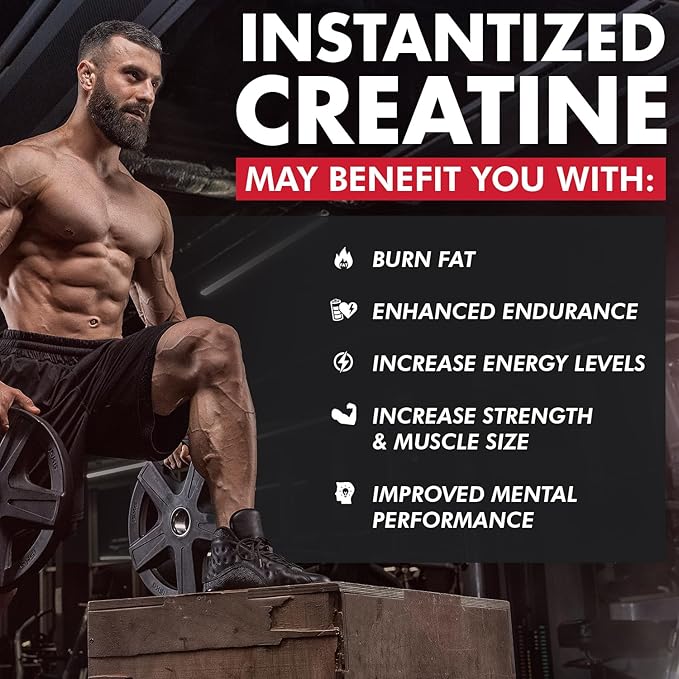 - ZERO BLOATING FORMULA: Experience a lean, energized physique with Instantized Creatine, specially formulated to eliminate bloating and water retention. Perfect for athletes looking to boost performance without any side effects, making it ideal for use before and after exercise.