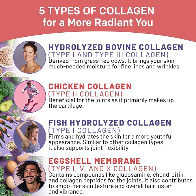 - Nutrient-Rich Supplement Formula: Our multi collagen peptides pack a potent blend of ingredients, including vitamins A, C, D3, E, niacin, and folate, plus minerals like zinc and calcium. It’s the perfect supplement for those seeking a vibrant, youthful sparkle as they age.