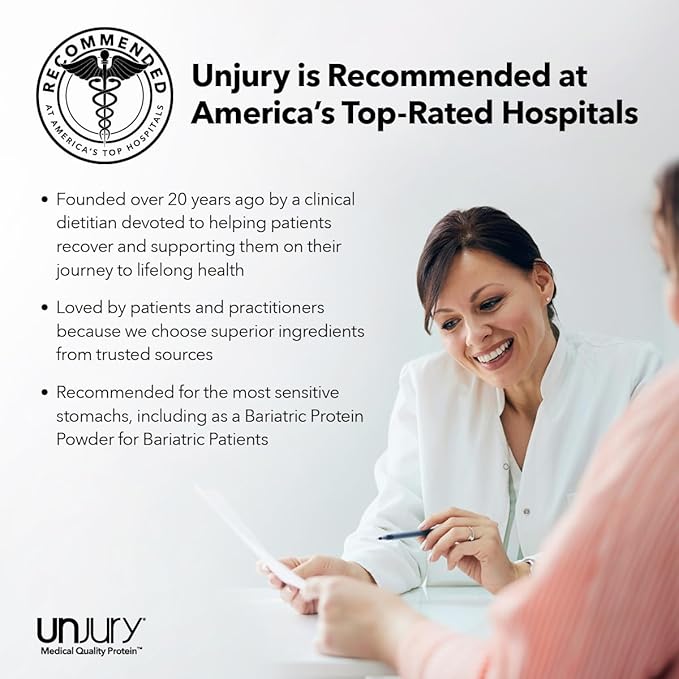- Trusted Since 2002: Unjury is loved by patients and practitioners because we choose superior ingredients from trusted sources. Unjury is often recommended for the most sensitive stomachs, including as a Bariatric Protein Powder for Bariatric Patients.