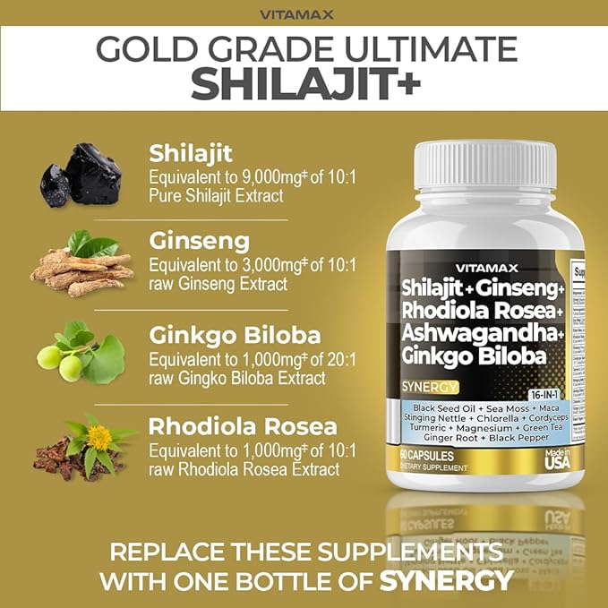 - Comprehensive Capsules: For men and women conveniently in one combo pack. Pure organic shilajit is a centuries-old treasure from the Himalayas that nourishes our mind and body with rare and essential minerals and fulvic acid. This elixir of vitality, paired with 16 comprehensive ingredients, this duo offers a vitalizing boost to our body's natural healing process.
