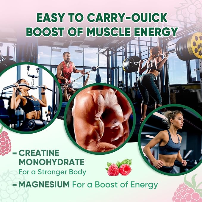 - [ Key Benefits]: Our Creatine monohydrate gummies are an easy way to consume, 3 gummies per serving, you can take it at any time, any place. It improved muscle strength, muscle recovery, improve endurance and energy boost. Suitable for a variety of users, and enjoyable taste.