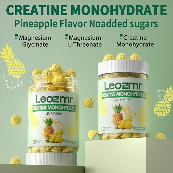 Creatine Monohydrate Gummies 5000mg for Men & Women, Chewables Creatine Monohydrate Supplement(120 Count)- Pineapple 120 Gummies