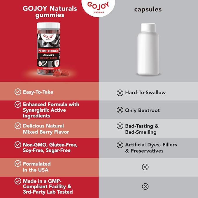 - GOJOY NATURALS: QUALITY YOU CAN TRUST - We use only the highest quality ingredients and our gummies are non-GMO, gluten-free and naturally flavored. Each of our products is 3rd party lab-tested for purity and made in a GMP-compliant registered facility. At GOJOY, we're more than just a supplement brand, we're a movement towards a healthier and more delicious way of life. Join us and discover the delicious way to improve your health.