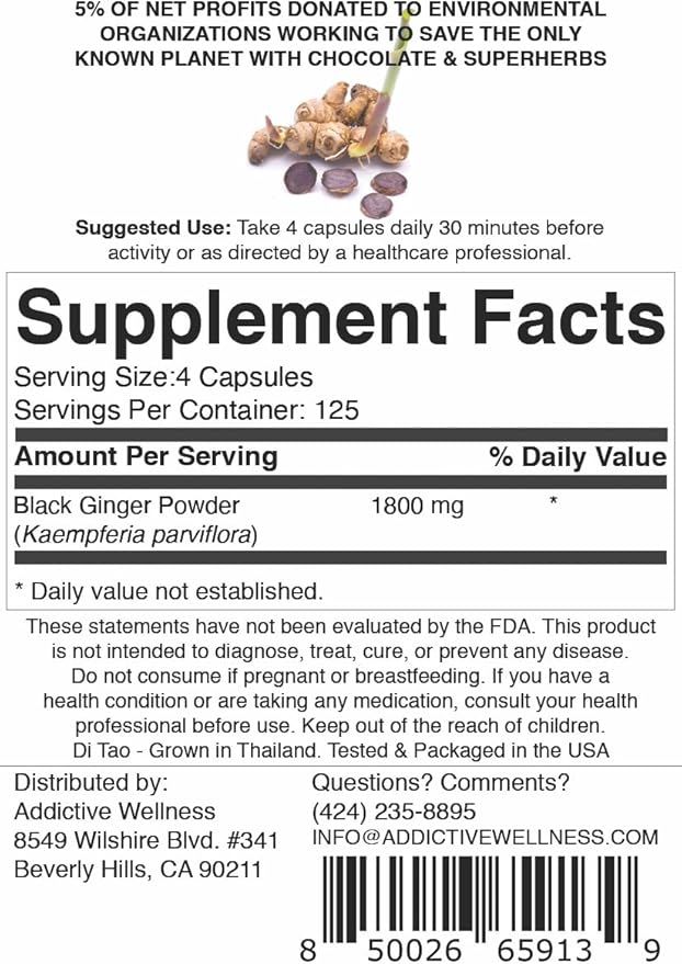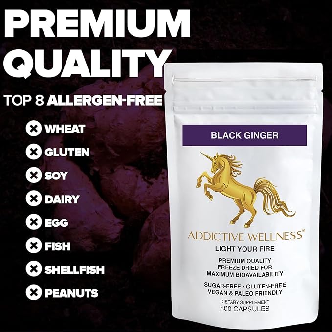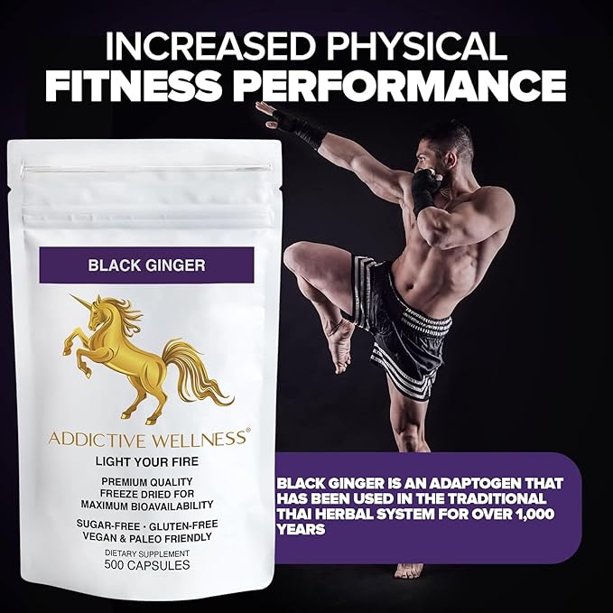 Addictive Wellness Thai Black Ginger for Men, Thai Black Ginger Supplement to Support Energy Metabolism, Endurance & Performance, Freeze Dried Black Ginger Capsules 450mg, Vegan & Paleo, 500 Count