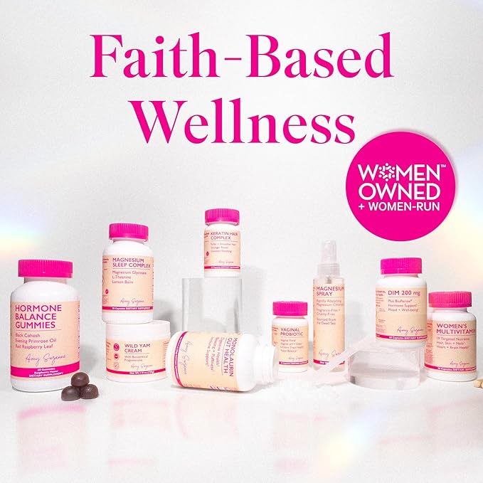- Holistic Wellness: From hormonal health to spiritual peace, our solutions cater to your entire being. We know maintaining your health is hard enough, so we make it easy; take alongside any Amy Suzanne supplements for ultimate wellness; we offer Vaginal Probiotics for pH balance, DIM plus Bioperine, and Hormone Balance Gummies. Your body is a temple; care for it like one.