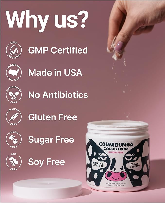 Cowabunga Colostrum - Premium, Pure & Unaltered Colostrum Powder Supplement - for Immune Support, Gut Health, Muscle Recovery & Wellness with Supergut - Kosher & Halal Certified Calostro