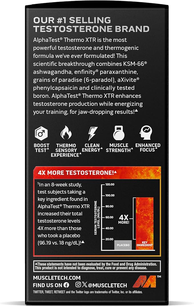 MuscleTech AlphaTest Thermo XTR Thermogenic Testosterone Booster| Muscle & Strength Builder for Men | Workout Supplement | 90 Capsules | 30 Servings