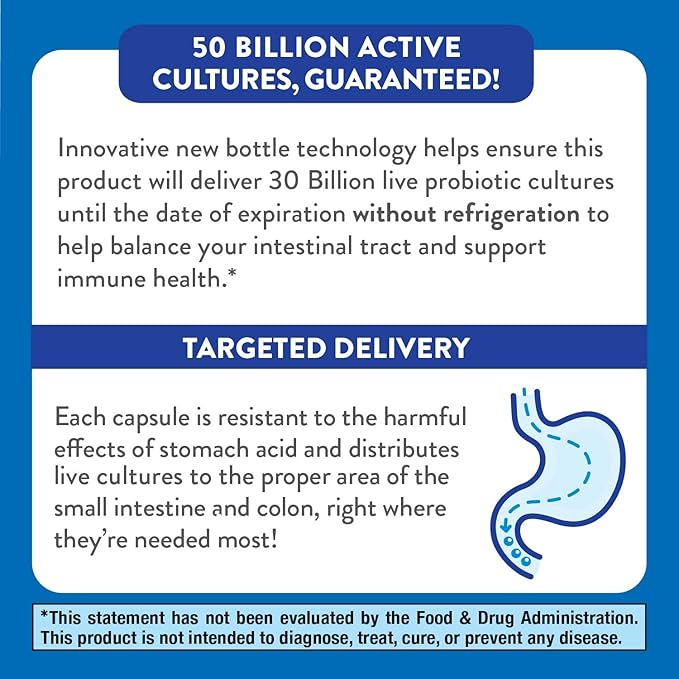 - Adults take 1 capsule daily. May be taken at any time, with or without food. Each capsule is resistant to the harmful effects of stomach acid and distributes live cultures to the small intestive and colon. No refrigeration required.