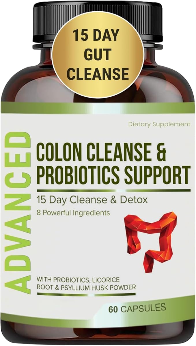 15 Day Gut Cleanse Detox for Women & Men - Advanced 15 Days Colon Cleanse with Probiotics and Psyllium Husk for Constipation Relief, Digestive Health, Colon Cleanser & Gut Health.60 Caps.